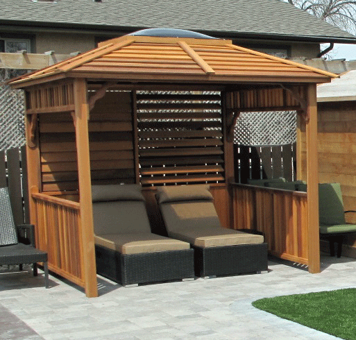 Cedar color stain on gazebo packages.