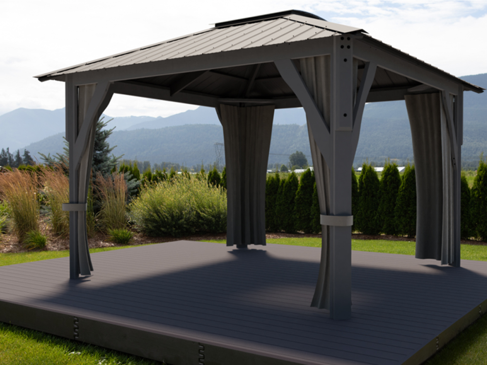 Formed and cut in Canada, the Visscher metal roof is a modern-looking, long-lasting feature of your backyard structure. This roof style makes a statement of longevity and strength. We are so confident of this roof material that we offer an industry-leading ten year limited warranty on sheet defects.
